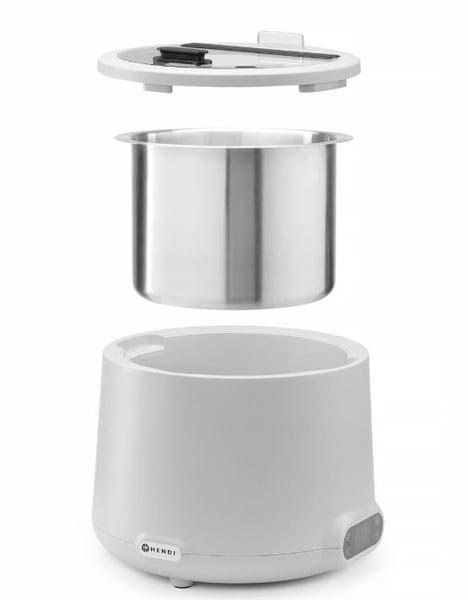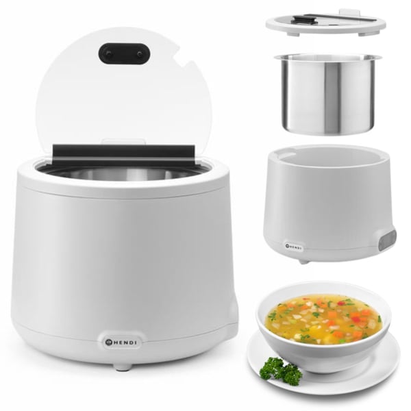 Супниця HENDI є стандартним, найкращим рішенням для підтримки постійної температури перших страв – різних супів, бульйонів, рідкого пюре та каш, готових до подачі, без підгоряння. Прилад має сучасний корпус. Марміт-супниця використовується на кухнях для збереження вже приготованих страв, на лініях роздачі, для ресторанів самообслуговування, для виїзного обслуговування, барів. Супниці дозволяють зберігати температуру перших страв без підключення до електромережі протягом тривалого часу і підігрівати страву, що охолола, встановивши необхідну температуру підігріву. HENDI UNIQ розроблений відомим голландським дизайнером Робертом Бронвассером і доступний у 4 стильних кольорах.