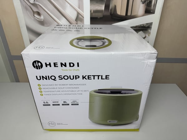 Супниця HENDI є стандартним, найкращим рішенням для підтримки постійної температури перших страв – різних супів, бульйонів, рідкого пюре та каш, готових до подачі, без підгоряння. Прилад має сучасний корпус. Марміт-супниця використовується на кухнях для збереження вже приготованих страв, на лініях роздачі, для ресторанів самообслуговування, для виїзного обслуговування, барів. Супниці дозволяють зберігати температуру перших страв без підключення до електромережі протягом тривалого часу і підігрівати страву, що охолола, встановивши необхідну температуру підігріву. HENDI UNIQ розроблений відомим голландським дизайнером Робертом Бронвассером і доступний у 4 стильних кольорах.