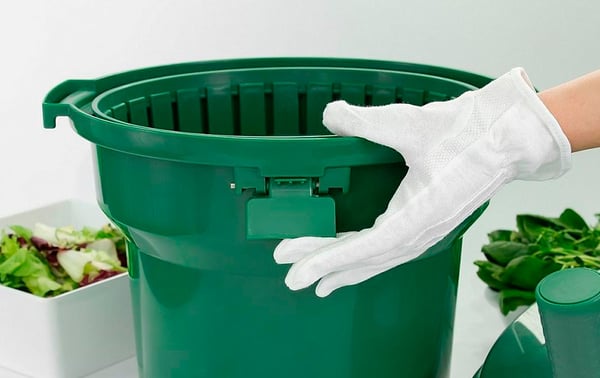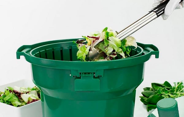 Центрифуга з гальмом служить для просушування листя салату. Обладнана контейнером із харчового пластику, об'ємом 9,5 літрів.