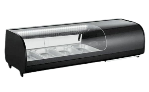 Це обладнання виготовлене спеціально для демонстрації суші-ролів, тапас та наримаки. Сприяє збереженню цих продуктів при відповідній температурі, рівні вологості та запобігає завітрюванню рису та морепродуктів.