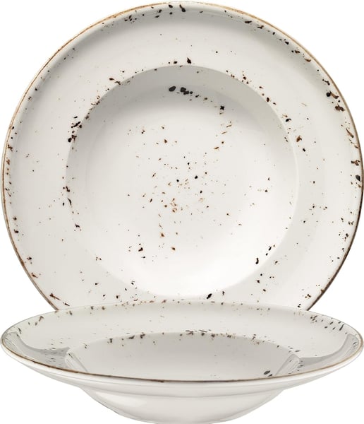 Колекція Bonna Grain – це колекція професійного порцелянового посуду, розписана вручну та доступна в оригінальному дизайні, який неодмінно привертатиме увагу при подачі. Колекція Bonna Grain представлена в білому кольорі у теплих відтінках з кавовим кантом та вкрапленнями: приємним поєднанням вершкового, коричневого, золотистого, чорного кольорів та ідеально підходить для сервірування столу в їдальні або кухні, у вітальні під час фуршету, в ресторані або кафе.