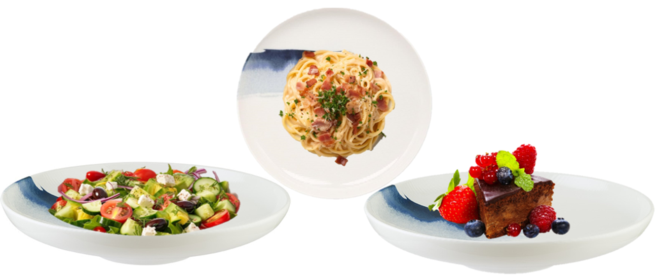 Колекція Bonna Blue Wave – це колекція професійного порцелянового посуду, розписана вручну та доступна в різноманітних кольорах. Посуд даної серії відрізняє неповторний цікавий дизайн, який нагадує блакитні морські хвилі. Такий дизайн буде чудово виглядати на будь-якому столі і вигідно виділяти страви, що подаються. Окрім естетичності, посуд відрізняється неабиякою функціональністю, що робить його ідеальним як для повсякденного використання, так і для особливих випадків.