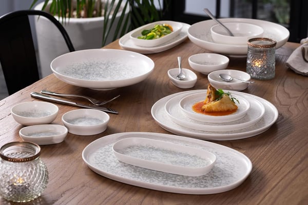 Тарілки та салатники мають зміцнений борт, який витримує високі механічні навантаження, завдяки чому вироби майже не схильні до сколів.