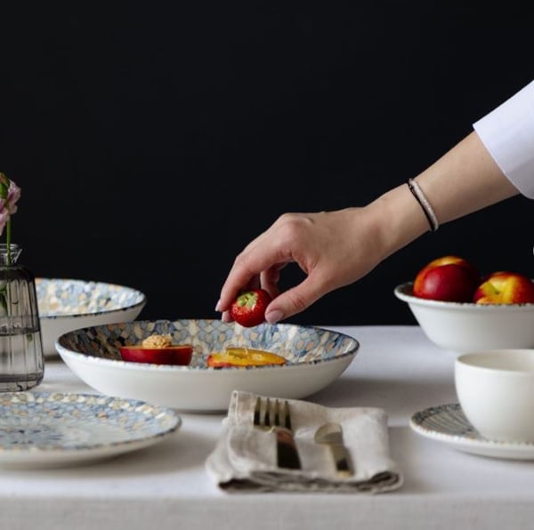 Колекція Bonna Luca Mosaic – це колекція професійного порцелянового посуду, розписана вручну та доступна в оригінальному дизайні, який неодмінно привертатиме увагу при подачі. Незвичайний малюнок колекції Bonna Luca Mosaic відображає заворожливу красу турецького мозаїчного мистецтва, де незліченна кількість елементів поєднується, створюючи справжній візуальний шедевр. Незалежно від того, чи подаєте ви ніжну закуску, чи основну страву, ця колекція додає нотку природної витонченості до кожної сервіровки столу, запрошуючи відвідувачів зупинитися та оцінити найтонші деталі трапези.
