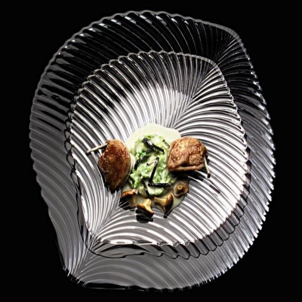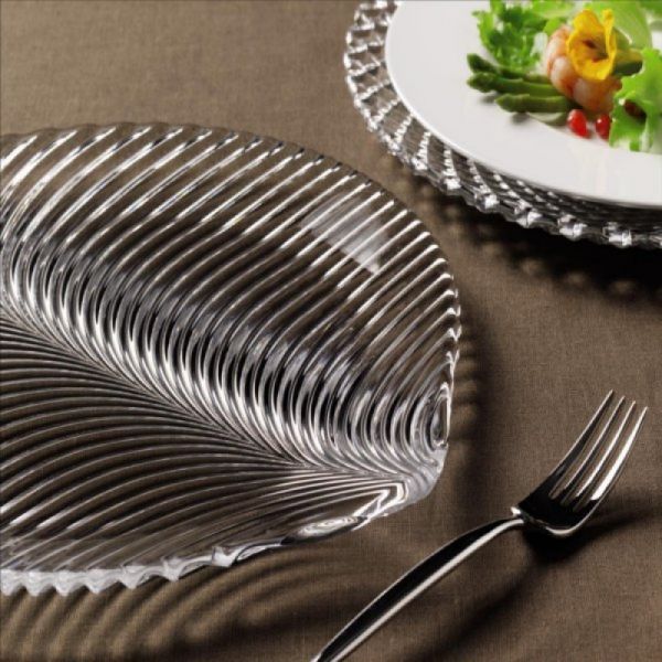 Кришталева тарілка серії Mambo у формі опалого листа ідеально підійде для подачі різних закусок, салатів у ресторанах, готелях та закладах громадського харчування різного напряму, а також для презентації десертів та фруктів.
