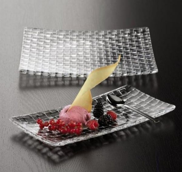 Кришталева тарілка серії Bossa Nova з текстурним візерунком палітурки тканини, ідеально підійде для подачі різних десертів, фруктів у ресторанах, готелях та закладах громадського харчування різного напряму, а також для презентації різних закусок.