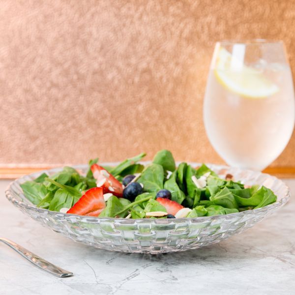 Кришталева тарілка серії Bossa Nova з текстурним візерунком палітурки тканини, ідеально підійде для подачі салатів, різних закусок та фруктів у ресторанах, готелях та в закладах громадського харчування різного напряму, а також для презентації різних закусок.
