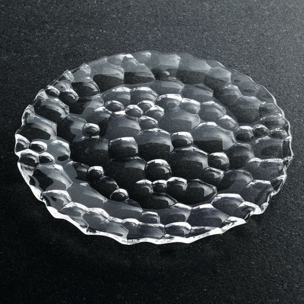 Презентаційна тарілка виконана з кришталевого скла, яке має високий коефіцієнт заломлення та відноситься до категорії професійного посуду, може використовуватися дуже інтенсивно щодня, також її можна мити у посудомийці.