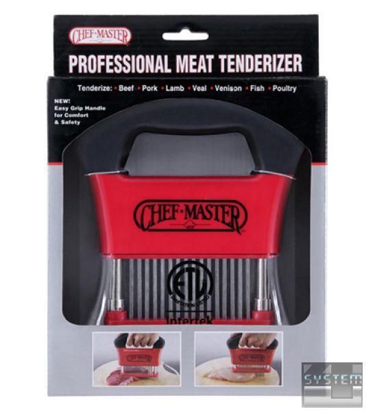 Тендерайзер ручний для нарізки свинини, телятини, баранини, риби та інших продуктів. Зменшує час роботи на 40%. Конструкція із пластику з трьома рядами по 16 лез із нержавіючої сталі. До комплекту входить пластикова кришка.