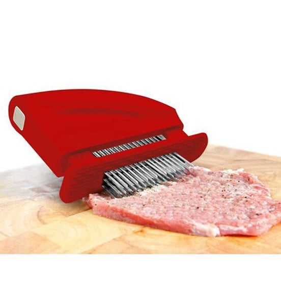 Леза тендерайзера, виготовлені з нержавіючої сталі, висуваються під час удару в поверхню шматка м'яса, насікаючи його по всій товщині. Завдяки нашому тендерайзеру, час маринування скорочується на три чверті в порівнянні з традиційною обробкою м'яса. Час приготування, смаження, грилювання розпушеного м'яса скорочується майже на 50% і м'ясо значно менше уварюється!
