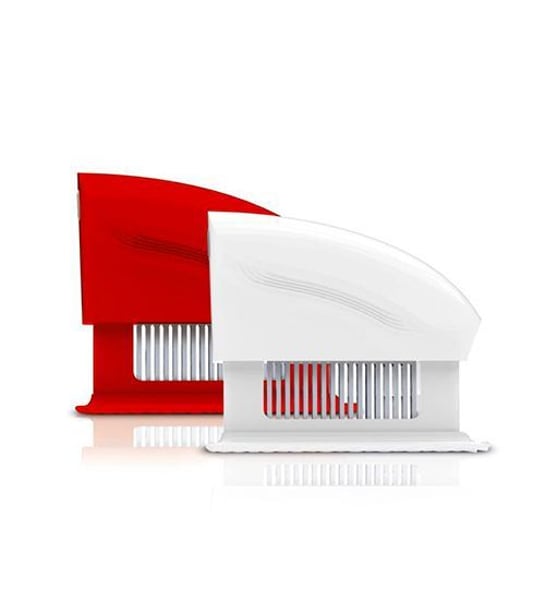 Сучасна та найефективніша технологія облагородження, розпушення та покращення якості смаку м'яса без вживання хімікатів. Пристрій поєднує у собі метод глибоких насічок волокон м'яса з одночасним легким відбиванням.
