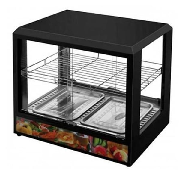 З боку продавця розсувні дверцята для викладення та видачі готових страв. Фронтальне скло пряме. Нагрівач дисплея працює у діапазоні температур +30 до +110°C.