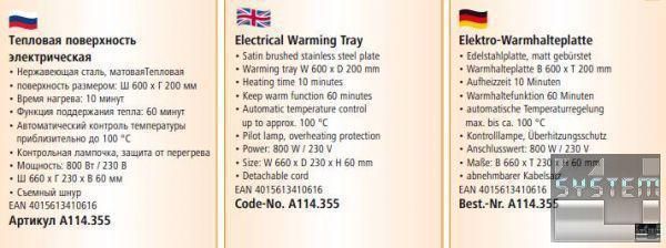 Описание тепловой поверхности Bartscher 114.355:
