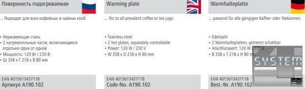 Описание тепловой поверхности для кофе, чая Bartscher А190.102: