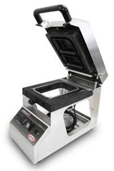 Термопакувальна машина Orved Profi 1N упаковує продукти в лотки спеціальною термостійкою плівкою.