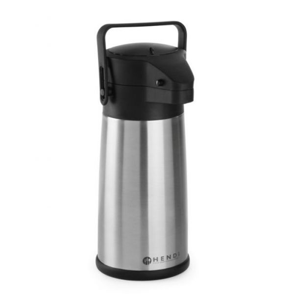 Термос виконаний із нержавіючої сталі, з подвійними стінками. Кришка та ручка з поліпропілену. Насос – для легкого дозування напою.