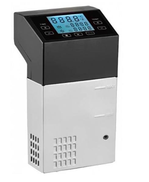 Цифрова панель управління, РК дисплей та затискач для кріплення до посудини, що дуже надійно в даному варіанті приготування продуктів. Діапазон температур від 5 -..+99°С.