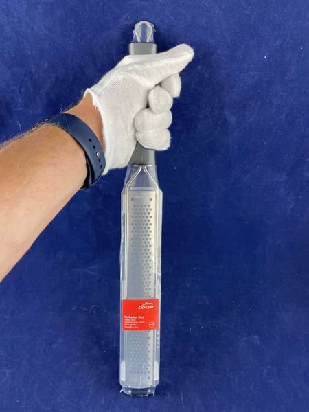 Дрібна терка із захисним елементом призначена для натирання та подрібнення продуктів, шоколаду, сиру, горіхів, незамінний інвентар на кухнях ресторану, кафе, бару, фаст-фуду, на виїзних заходах.