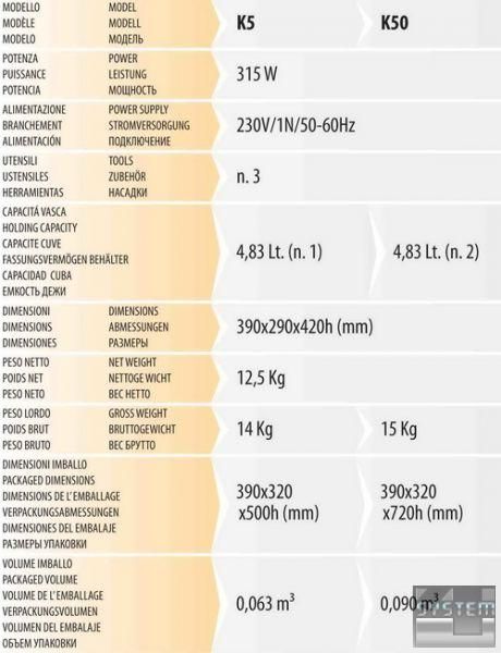 - Модель K50 оснащена 2 діжами та тепловим захистом двигуна.