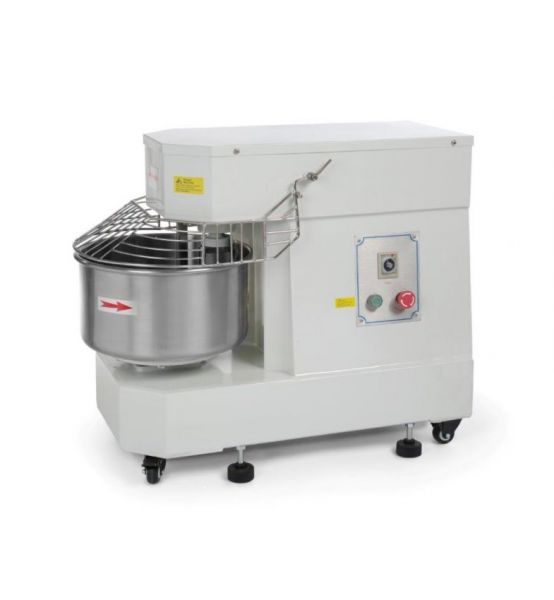 Тістоміс спіральний обладнаний фіксованою дежою, спіральним місним органом та кришкою, які виконані з харчової нержавіючої сталі 18/10.
