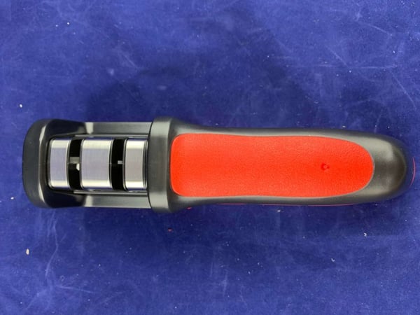 Корпус верстата для заточування ножів виконаний з якісного пластику, ергономічна ручка та антиковзна підстава забезпечують безпеку та комфорт у використанні.