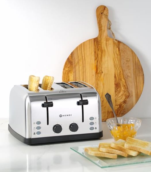 Тостер Hendi 261187 призначений для підсмажування і швидкого приготування класичних тостів, а також підігріву сендвічів та розігріву готових виробів, включно хлібців, булочок, піци, сосисок, бутербродів, гамбургерів.