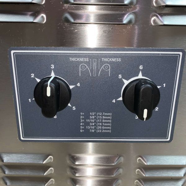 Апарат налаштовується під різну товщину булочок. Змінні тефлонові листи забезпечують легке просування булочок без застрягання або зісковзування.