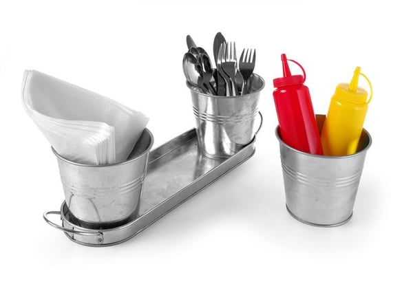 Три відерця з підносом з оцинкованої сталі ідеально підійдуть для подачі столових приладів та серветок, стануть оригінальним та практичним доповненням будь-якого столу.