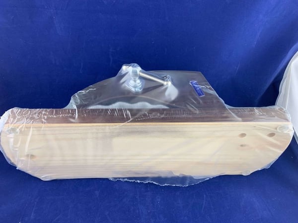 Підставка виготовлена з якісного дерева, лакована сосна темного кольору, із металевими тримачами.