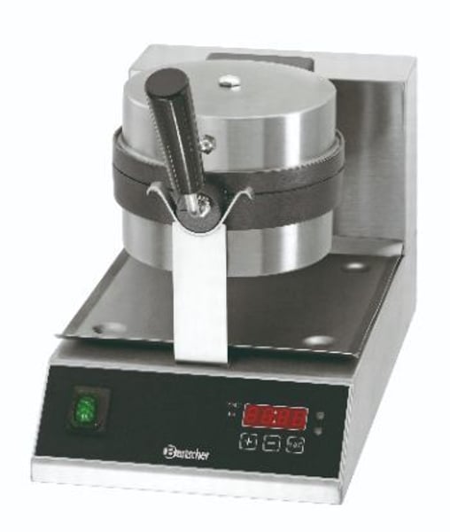 Корпус однопостової електрофавельниці виконаний із високоякісної нержавіючої сталі, а робоча поверхня для приготування вафель із чавуну з антрипригарним покриттям.