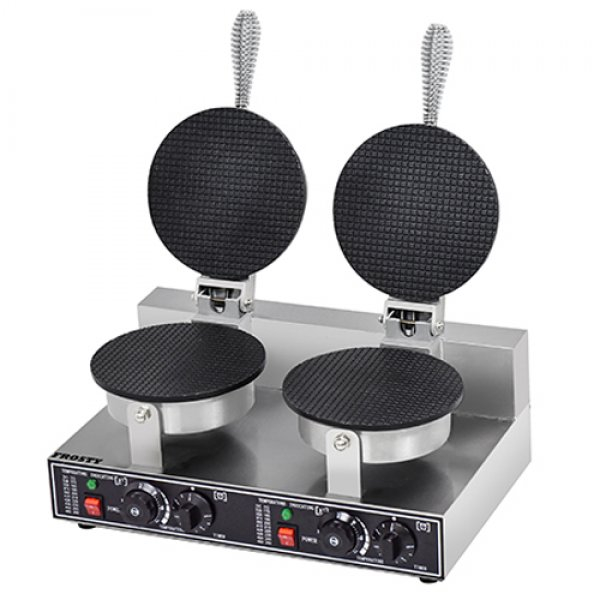 Вафельниця Frosty застосовується для виготовлення класичних вафель у формі конусних стаканчиків на професійній кухні: для заготівлі та швидкої подачі сніданків, ланчів, десертів. В основному вафельниці часто використовують у готелях, кафе та закладах, до меню яких входить їжа швидкого приготування.
