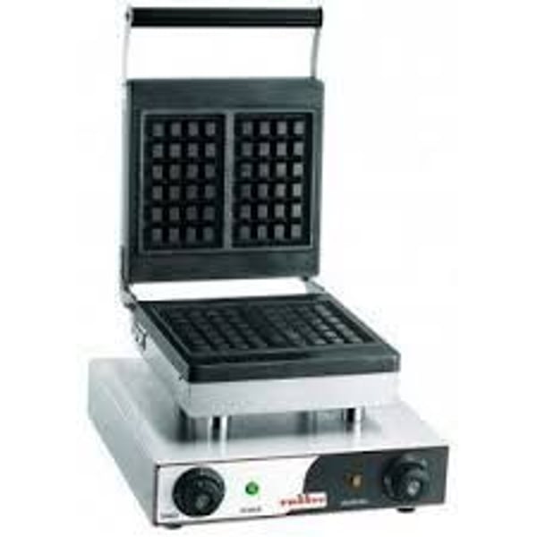 Корпус однопостової електрофавельниці виконаний з нержавіючої сталі, а робоча поверхня для приготування вафель з чавуну та антрипригарного покриття. На цьому обладнанні можна приготувати не тільки вафлі бельгійські, але і віденські та англійські. Форма вафлі прямокутна, розмір 185х185мм, кількість комірок 4х6шт. Час випікання швидкого кондитерського виробу від 2 до 4 хвилин. Потужність 1,5 кВт. таймер – 15 хвилин.
