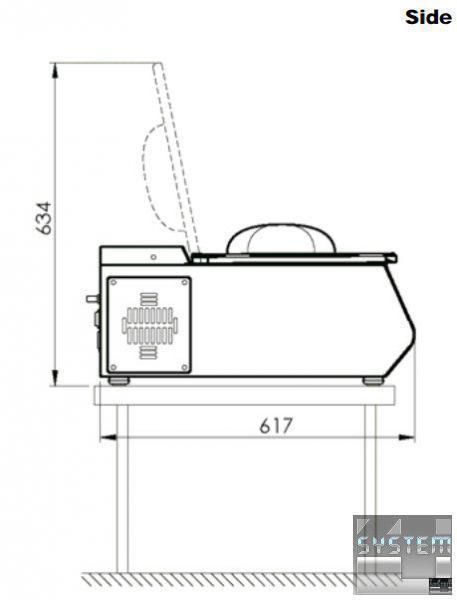 - Корпус з нержавіючої сталі та купоподібна прозора кришка з плексигласу дають можливість використовувати машину для пакування будь-яких харчових продуктів.