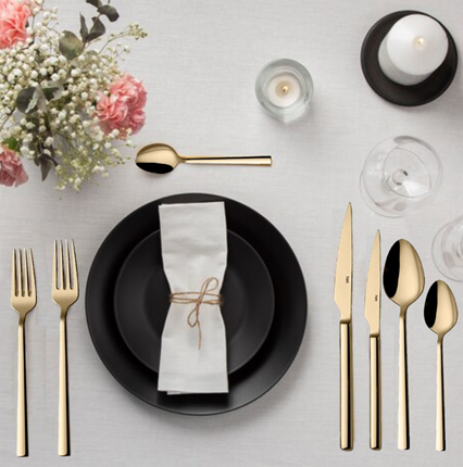 Столові прибори колекції GOLD MAT CHUBUK виконані із високоякісної харчової нержавіючої вуглецевої сталі 18/10 (вміст хрому – 18%, нікелю – 10%)