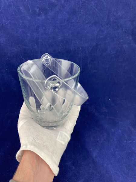 Відро для льоду виготовлене з прозорого загартованого скла, щипці для льоду з харчового пластику.
