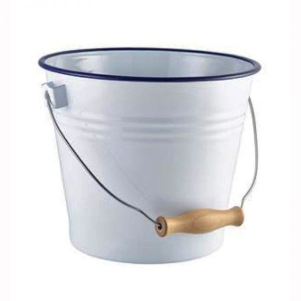 Емальоване цебро Хенді своїм ніжним кольором і тонкою синьою лінією зробить елегантним будь-який стіл, тим більше емальований посуд знову в тренді.