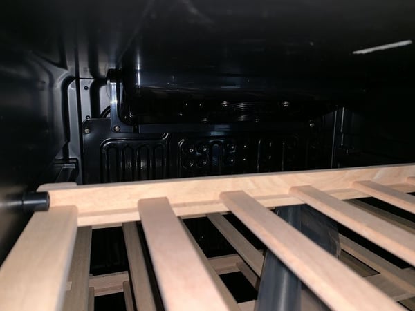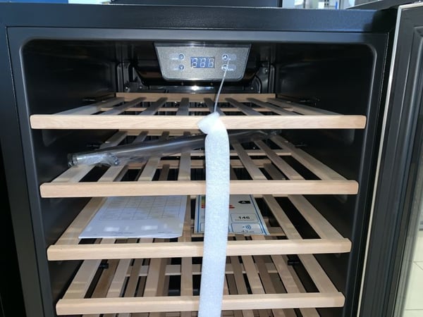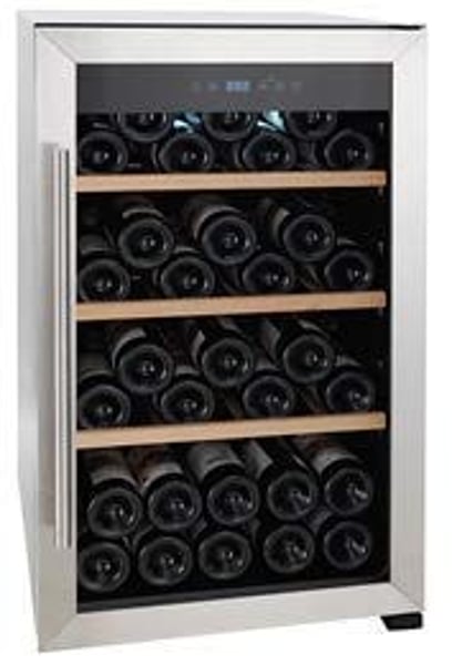 Корисний об'єм пристрою – 128л розрахований для зберігання до 52 пляшок у комфортному для збереження властивостей напою, при діапазоні температур – від +5 до +20 ° С, скляні двері, кількість полиць 6+2 та внутрішнє LED – підсвічування.
