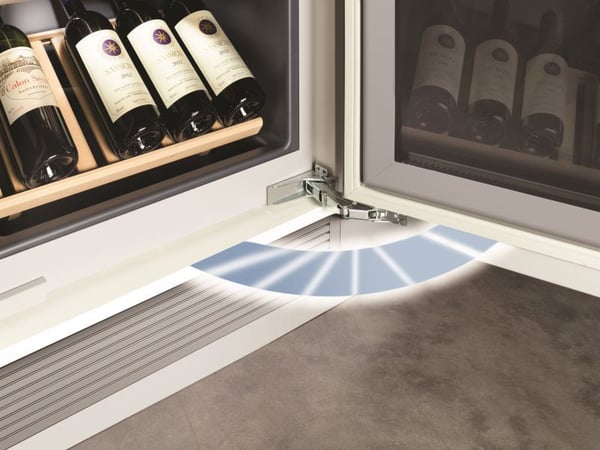 Внутрішнє підсвічування розміщене над верхньою полицею таким чином, щоб світло не впливало на якості та смак вина. Адже, при попаданні прямих променів, вино набуває неприємного запаху.