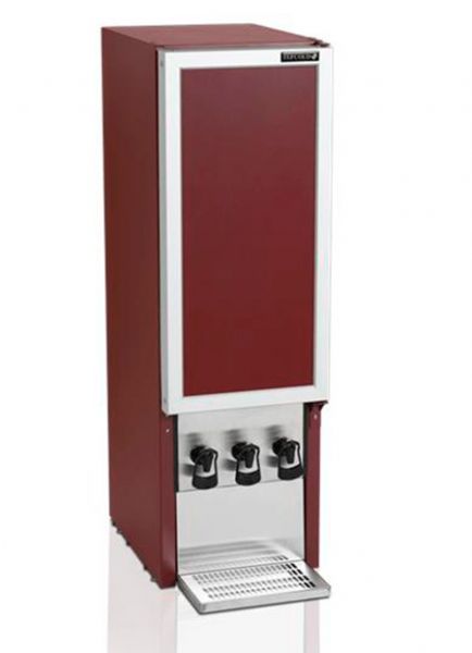 Холодильник для вина обладнаний трьома кранами Bag-in-Box , диспенсери місткістю по 10 літрів кожен, призначені для наливання та подачі вина в келихах або декантації.
