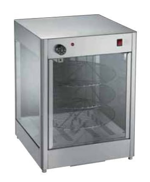 Теплова вітрина для піци - це електричне настільне обладнання, яке буде служити вам і вашому підприємству для збереження та презентації піци в теплому вигляді. Обладнання має 3 полиці-решітки для піци діаметром 360 мм, які обертаються. Вітрина внутрішньо освітлюється. Є резервуар для води та зволоження повітря в камері. Корпус виконаний із нержавіючої сталі.