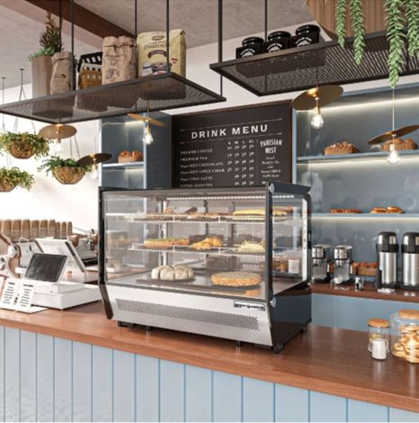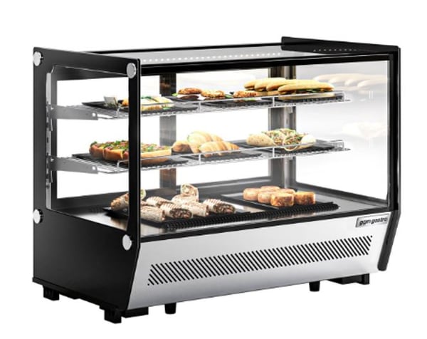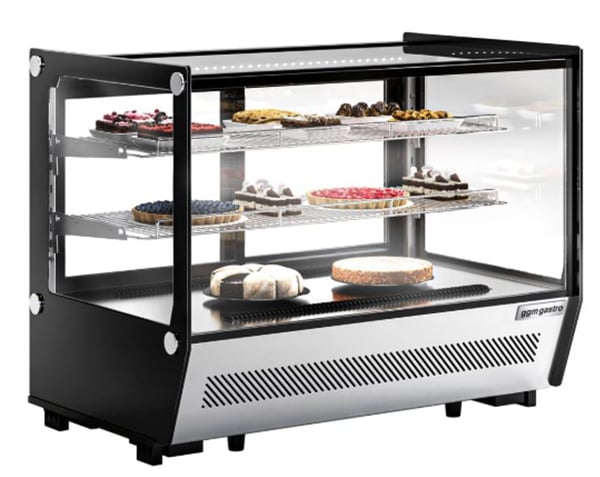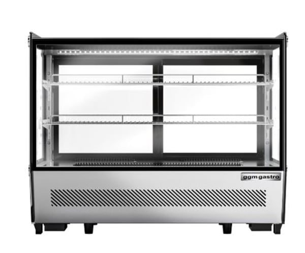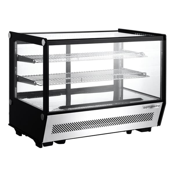 Холодильна настільна вітрина створена для експонування і короткочасного зберігання кондитерських виробів (тортів, тістечок, маффінів, шоколаду та багато інших солодких виробів, які повинні знаходитися в охолодженому місці), холодних закусок в ресторанах, кафе, барах та інших закладах. Цей апарат буде зберігати вироби, зберігаючи їх свіжість і зовнішній вигляд. Вітрина GGM TKVGNR160 – це елегантний, компактний, настільний холодильник, який зручно розмістити на барній стійці у кафе, кав'ярні, на прилавку у невеликому магазині, кіоску та АЗС.