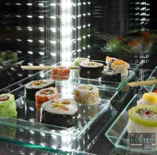 Полиці внутрішнього простору вітрини виготовлені із загартованого скла з додатковим світлодіодним підсвічуванням внутрішньої верхньої панелі.
