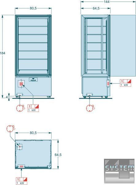 KP...; KC...; KD...: кожна полиця вітрини розрахована на здатність навантаження до 12 кг; на замовлення, надається додаткове обладнання KSR25KG : опорний набір для передніх скляних полиць, розрахований на навантаження до 25 кг.