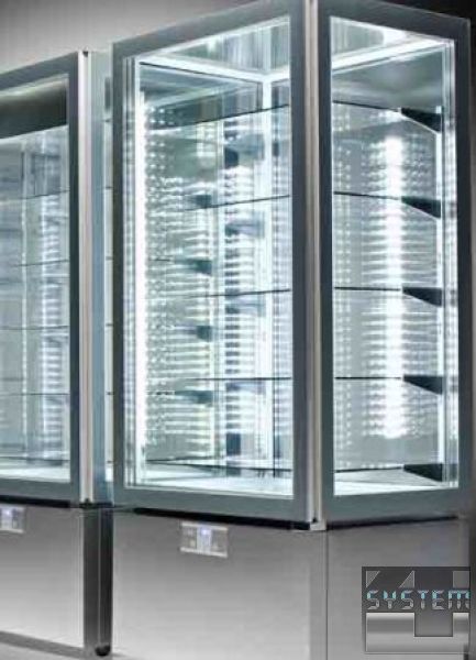 Полиці внутрішнього простору вітрини виготовлені із загартованого скла з додатковим світлодіодним підсвічуванням внутрішньої верхньої панелі.