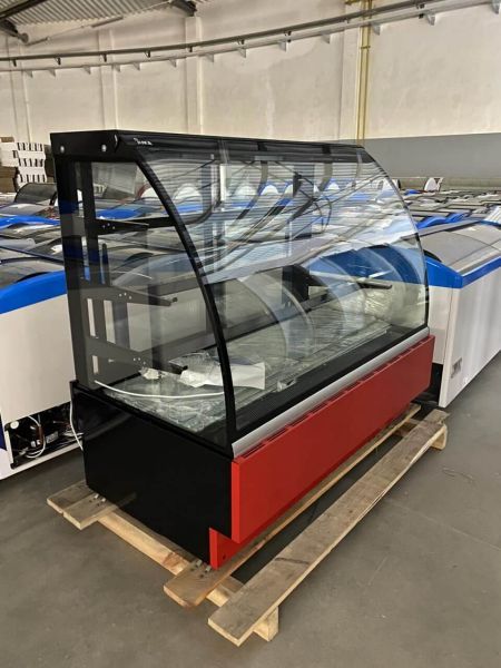 Вітрина оснащена чотирма охолоджуючими скляними полицями, гнуте скло, які забезпечують велику демонстраційну площу, а в поєднанні з яскравим внутрішнім підсвічуванням, що дозволяє використовувати її в різний час доби, привертає увагу покупців до вітрини та продукції.