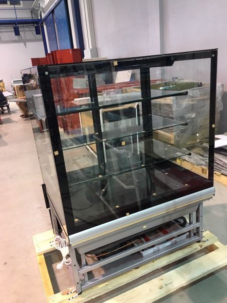 Кондитерська вітрина для гарного візуального перегляду з усіх боків обладнана склопакетами. Можна замовити декоративну обшивку вітрини з дерева або металу різного кольору, яка надасть торговій точці унікальності та привабливості.