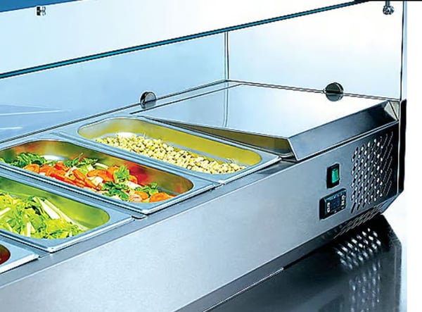 Настільна холодильна вітрина для топінгу використовується для попереднього охолодження, демонстрації та короткочасного зберігання заготовок, салатів, закусок, гарнірів у ресторанах, магазинах, барах, суші-барах. Найбільш широко застосовуються в піцеріях для зберігання топінгу – начинки для піци. Зазвичай вони відокремлюють прилавкову зону від самого залу або розташовуються вздовж лінії самообслуговування. Обладнання виготовлене з високоякісних сертифікованих матеріалів.
