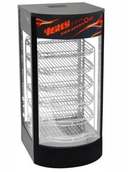 Настільна вітрина забезпечує необхідну температуру від +30 до +85 °С, має 6 хромованих рівнів. Теплова лампа та тени з термостатом. Корпус вітрини виконаний із нержавіючої сталі, зігнуте скло. Наливне зволоження, світлодіодне підсвічування камери.