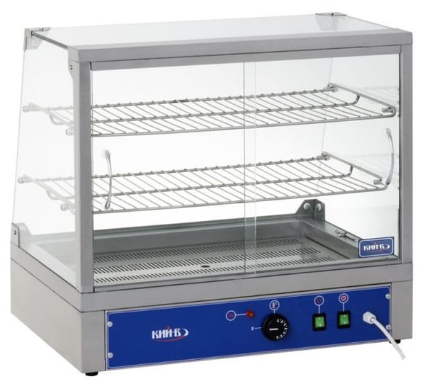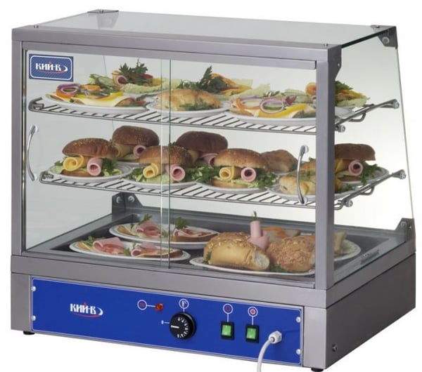 Теплова вітрина створена для зберігання, підігріву та експонування готових страв. Часто застосовується у кафе, закусочній, кав'ярні, де готують свіжу випічку. Даний апарат зберігає вироби в теплому стані, зберігаючи їх смак та зовнішній вигляд.
