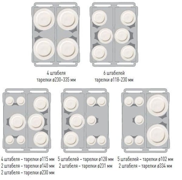 Усередині перевізний візок оснащений рухомими обмежувальними рейками. Рейки з поліетилену дозволяють завантажувати тарілки різного розміру.